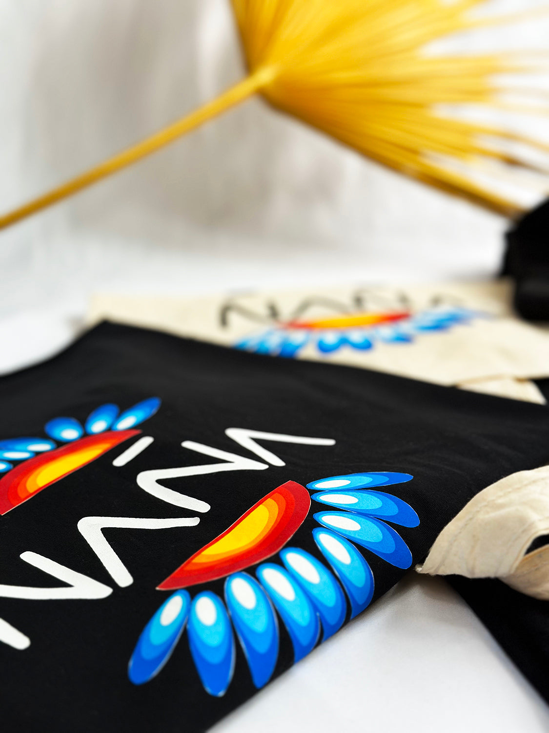 El estampado está lleno de significado. De un lado, la palabra ÑAÑA viene del kichwa, hermana, y es una palabra extendida en Ecuador también entre hispanohablantes. Una celebración de la sororidad. Del otro los diseños que la acompañan están inspirados en el arte Tigua, lleno de cultura e identidad en las montañas de la cordillera occidental de los Andes ecuatorianos.